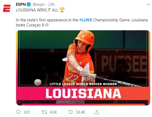 - The team from Louisiana won the LLWS over Curacao in a dominating fashion 8-0. With this win, US teams have now won its first back-to-back LLWS title since 2009. The suburban NOLA team went undefeated through the consolation bracket after losing its first game to Hawaii.