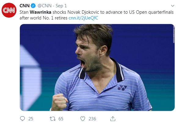 - #1 Djokovic lost to SWI Stanislas Wawrinka in the 4th round